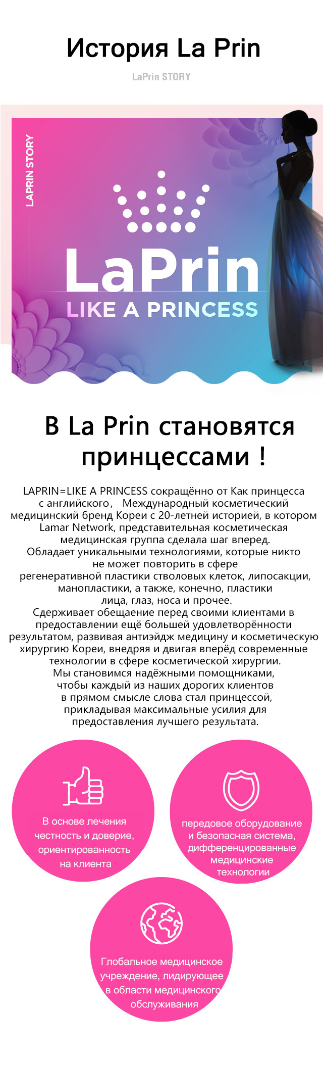 LAPRIN – LIKE A PRINCESS (сокращённо от «Как принцесса» с английского) – международный косметический медицинский бренд из Кореи с 20-летней историей, созданный группой Lamar Network, ведущей косметической медицинской организацией.