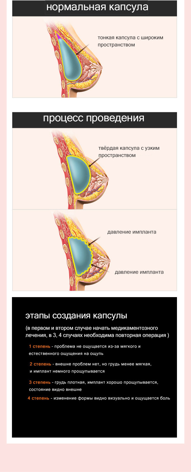 2 степень – внешне проблем нет, но грудь менее мягкая, и имплант немного прощупывается