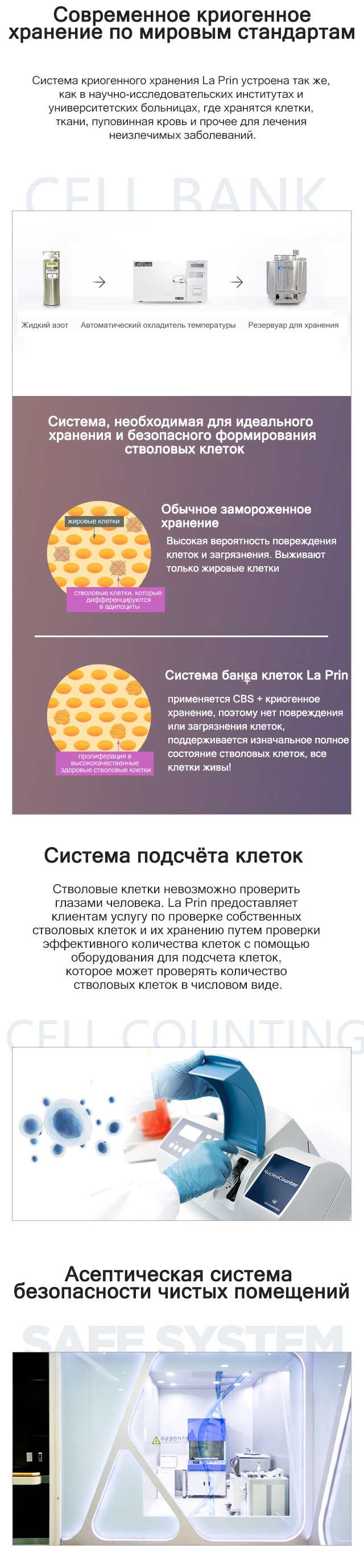Стволовые клетки невозможно проверить глазами человека. La Prin предоставляет клиентам услугу по проверке собственных стволовых клеток и их хранению путем проверки эффективного количества клеток с помощью оборудования для подсчета клеток, которое может проверять количество стволовых клеток в числовом виде.