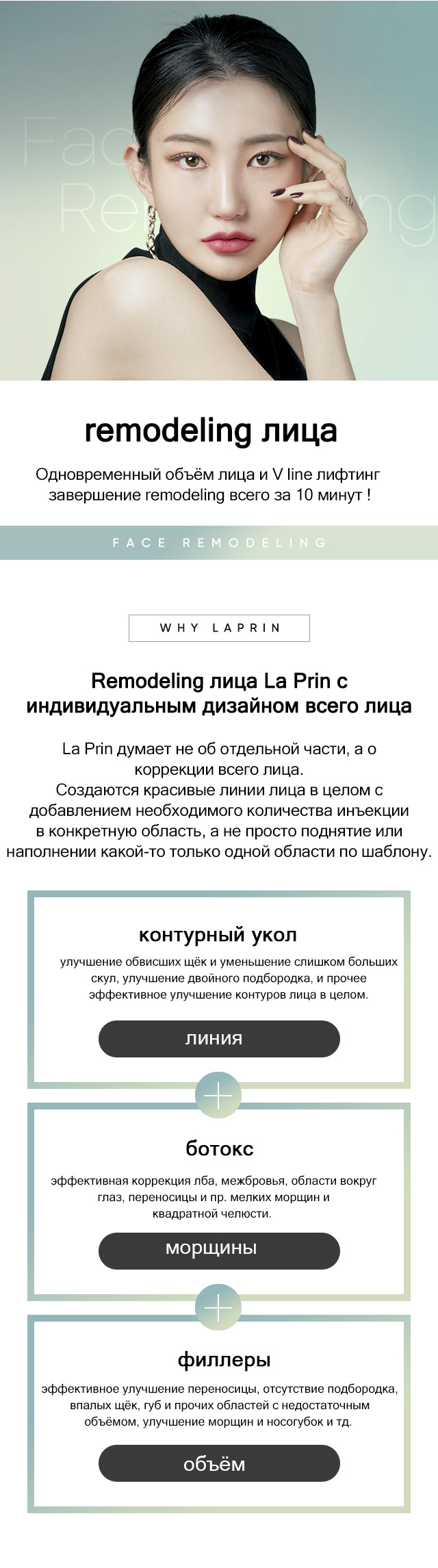 La Prin думает не об отдельной части, а о коррекции всего лица. Создаются красивые линии лица в целом с добавлением необходимого количества инъекции в конкретную область, а не просто поднятие или наполнении какой-то только одной области по шаблону.