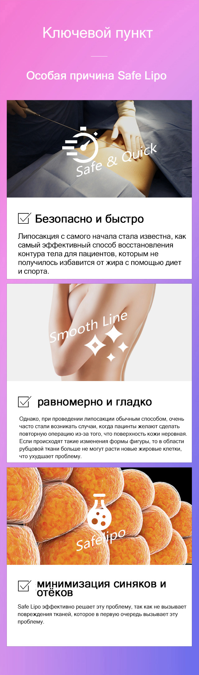 Safe Lipo эффективно решает эту проблему, так как не вызывает повреждения тканей, которое в первую очередь вызывает эту проблему.