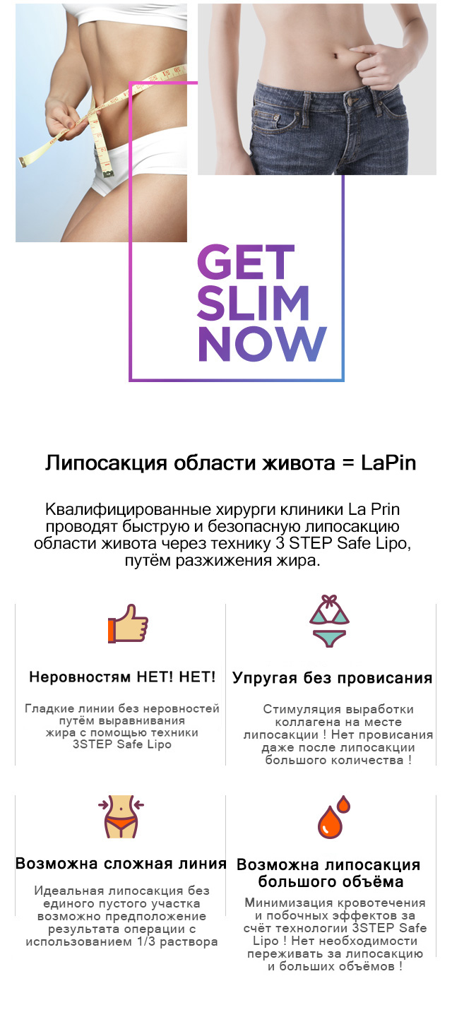 Квалифицированные хирурги клиники La Prin проводят быструю и безопасную липосакцию области живота через технику 3 STEP Safe Lipo, путём разжижения жира.