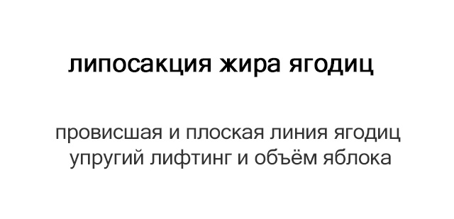провисшая и плоская линия ягодиц упругий лифтинг и объём яблока – липосакция жира ягодиц